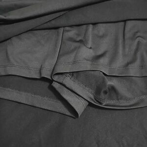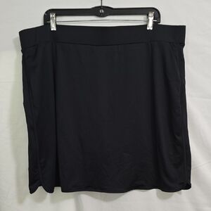 Classic black pull-on skort with a smooth waistband for easy wear. Lightweight, versatile design perfect for casual or sports. Soft, draping fabric that moves comfortably with you. Ideal for spring and summer. Women's size 2X. 39.5"W x 20"L. Shorts 3" inseam. 92% polyester, 8% elastane. Machine washable.