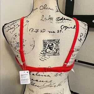 Size 2, perfect for D cups, adjustable straps, brand new with tag-has imperfections. Top only(not a set).