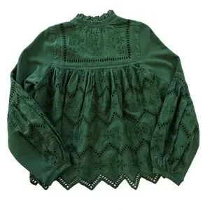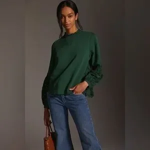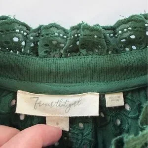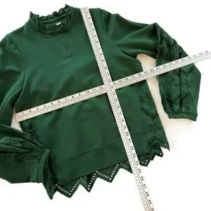 Anthropologie Forever That Girl Sweatshirt Womens Small Green Eyelet Boho