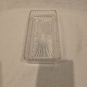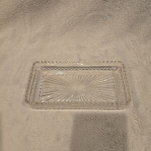 Vintage PRESSED GLASS CLEAR CANDY DISH Butter Relish Nut, Starburst Rectangle