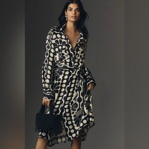 New Anthropologie Farm Rio Palermo Long-Sleeve Belted Midi Dress Size L
