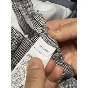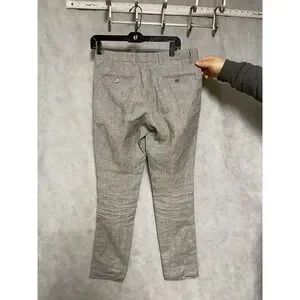 Zara Man Pants Men 30X36 Beige Gray Micro Houndstooth Dress Linen