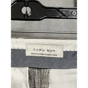 Zara Man Pants Men 30X36 Beige Gray Micro Houndstooth Dress Linen Vacation Hybrid Academia