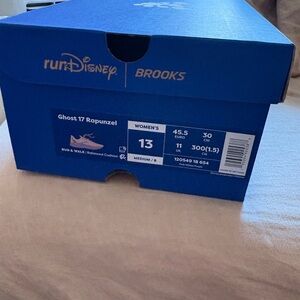 Lightweight Brooks running shoes. From the run Disney 2026 collection, rapunzel ghost 17s. Size women’s 13