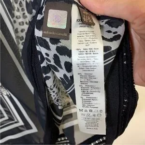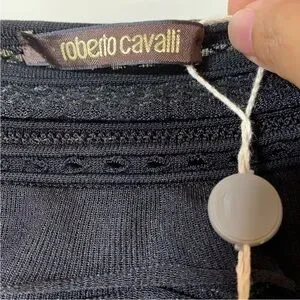 Master designer piece from Roberto Cavalli. Super classic yet trendy, elegant and chic. Intricate neckline trim adds texture. Subtle sheen on fabric. Timeless wardrobe piece.