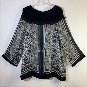 NWT. Roberto Cavalli Silk Cheta Lace Kimono Blouse.