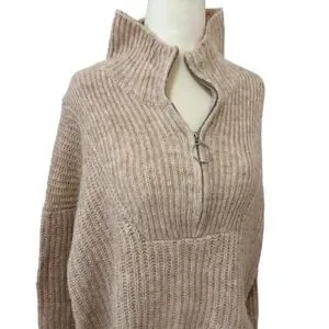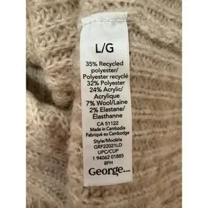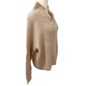 George Womens Quarter Zip Ribbed Knit Sweater Size Large Beige Oatmeal Pullover