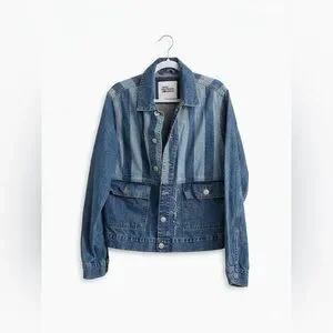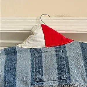 Search Tags: Tommy Hilfiger, Denim Jacket, Striped Denim, Mixed Wash, Trucker Jacket, Paneled Jean Jacket, Vintage Tommy, Street Style, Embroidered, Oversized Pocket