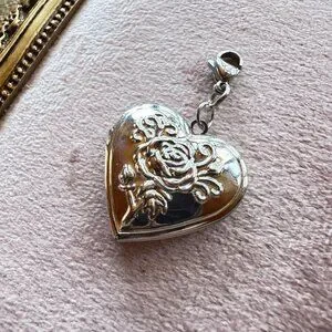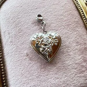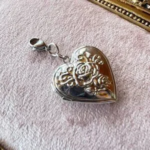 Heart Locket Charm Pendant With Floral Design In Stainless Steel Lobster Clasp