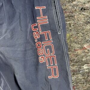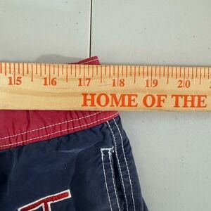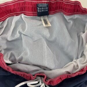 Keywords: Nautical, Preppy, Beachwear, Summer, Vacation, Swimwear, Designer, Classic, Sporty, Americana, Navy Blue, Red, Embroidered, Mesh Lining, Casual, Outdoors, Poolside, Water Sports, Surf, Board Shorts, Athletic, Retro, 90s Style, Hilfiger Denim, XL Shorts
