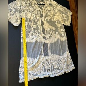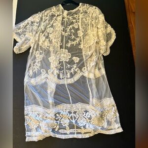 Sheer Off White Lace Kimono cardigan cover up dress Sz-L/XL. AA13