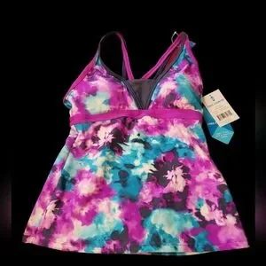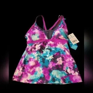 NWT Free Country TikiTieDye Sporty Tankini Small berry and slate colors