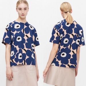 Marimekko Nea Pieni Unikko Navy and Cream Floral Top XS