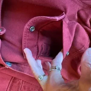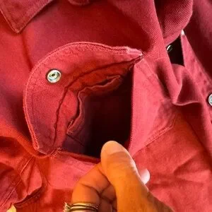 This is a fire hose shirt jacket by Duluth trading company in a size 4 XL. Please see photos for measurements as these are very generously sized. This jacket has so many awesome features, as most Duluth trading things do. It has a snap front with two front snap pockets Both have another pocket on the inside one for a pen one for a phone or other small item. There is one interior Velcro closure pocket on the left inside chest, there is a locker loop on the back to use to hang. There are adjustable snaps on the cuffs, and there is a gusset on the under arm for freedom of movement. This shirt is in excellent condition.