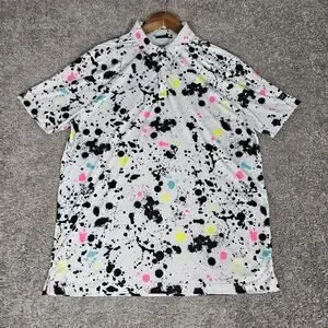 Sunday Swagger Shirt Men's Large White Golf Polo Paint Splatter AOP Performance