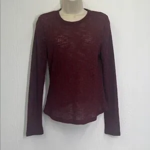 Free People - Aura Wine See Thru Crewneck Long Sleeve Layering Top Size Medium