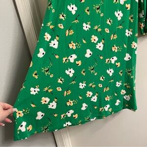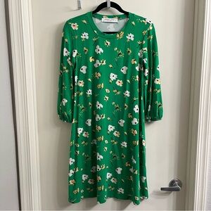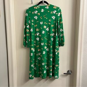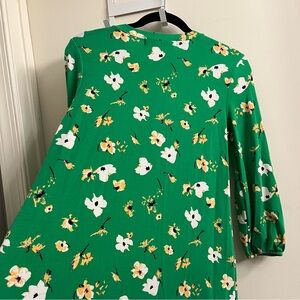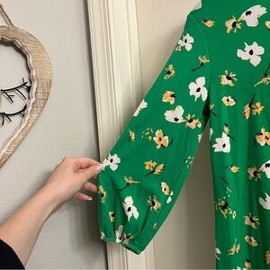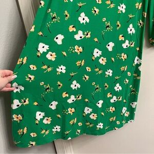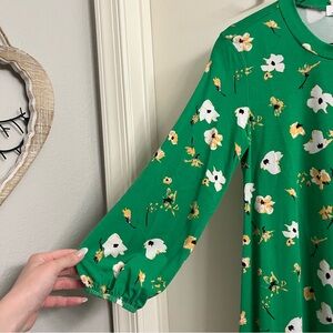 Green floral printed pullover flowy swing style play dress with 3/4 sleeves, tencel / lycra blend