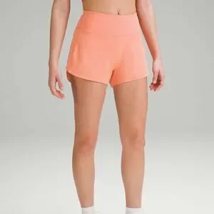 Lululemon - Speed Up Mid-Rise Lined Running Short 4", Sunny Coral, Size 8