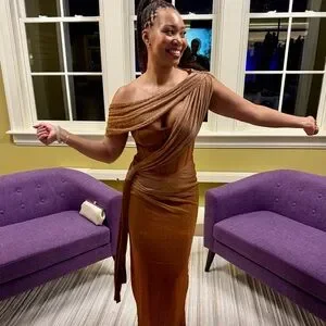 JLUXLABEL One-Shoulder Metallic Copper Brown Evening Gown