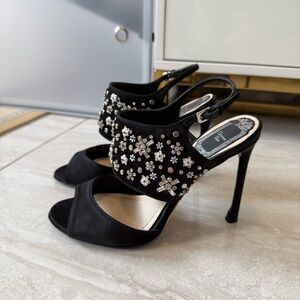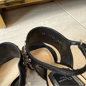 Authentic Dior Black Satin Crystal Embellished Ankle Strap Sandals Size 35.5