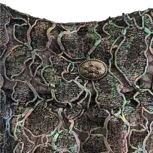 • Fabric: Multicolor iridescent lace overlay with silk lining