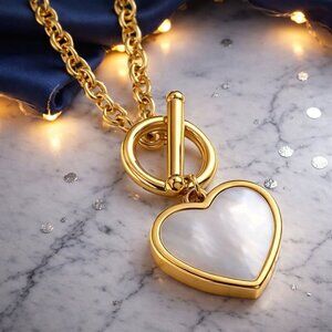 gold jewelry set | stainless steel necklace | hypoallergenic earrings | heart pendant | shell jewelry | mother of pearl look | toggle necklace | minimalist luxe | boho chic | romantic jewelry | gift for her | everyday staple | bridal jewelry | bridesmaid gift | anniversary | birthday | tarnish free | water resistant | aesthetic | trendy | classic | elegant | dainty | coastal | cottagecore | dopamine dressing | neutral | artisan style | everyday wear | chic | modern | statement piece | matching set | white shell | gold plated | womens accessories | fashion jewelry | luxury aesthetic | delicate | fine jewelry look | vacation | resort wear | office wear | evening wear | special event | present | ear studs | chain necklace | non tarnish | sensitive skin friendly | stylish | contemporary | timeless | elegant gift | effortless style | polished look | matching jewelry
