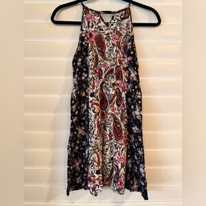 C&V Chelsea & Violet Cream Floral Paisley Mini Dress with Black Side Panels
