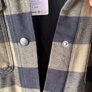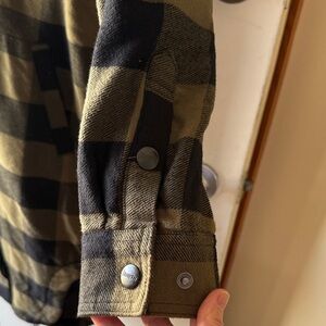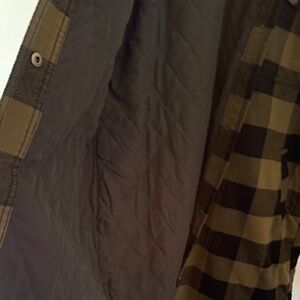 Duluth Trading Co Olive Green and Black Buffalo Plaid Long Jacket