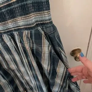 Anthropologie Teal Plaid Midi Dress with Smocked Waist