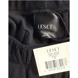 LESET Teddy Jogger Black Fleece Textured Sweatpants Made in USA XS LB091A-TEDDY