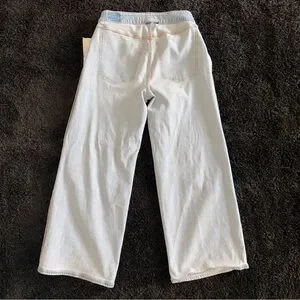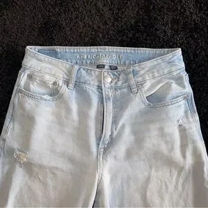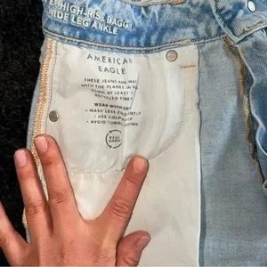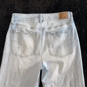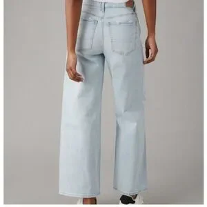 American Eagle Super High Rise Baggy Wide Leg Ankle Jeans Strigid Denim Size 2