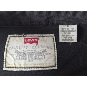Preowned button up denim in the vintage style. This is estimated to be 90s to 2000s Y2k. Classic **Levi's denim button-up shirt in size XL. Features durable 100% cotton construction with a timeless workwear look. Great for layering or wearing oversized.