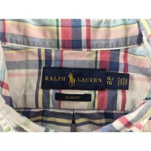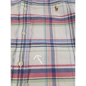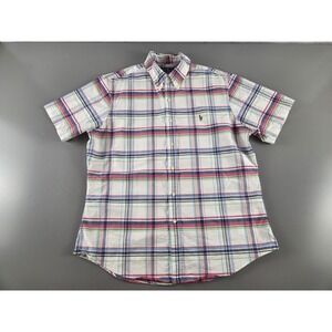Ralph Lauren Button Down Short Sleeve Slim Fit Windowpane Plaid Oxford Mens XL