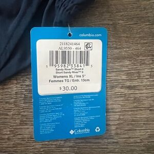 This listing is for a NWT's Columbia Sandy River Shorts in size XL, color navy blue. The shorts have a 5-inch inseam. Perfect for hiking or paddling, these versatile shorts with built-in UPF 30 and quick-drying nylon will keep you cool and comfortable.