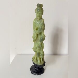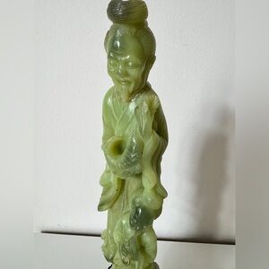 Made in a green jade-style material (likely soapstone, serpentine, or resin imitation). Smooth surface with a polished finish.