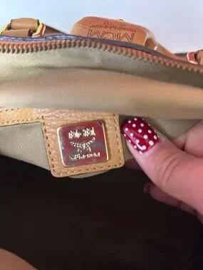MCM Cognac Logo Visetos Barrel Satchel with Gold Plaque