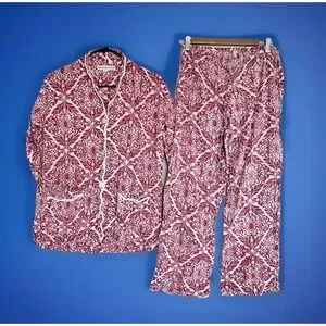 Featured item: A Heidi Carey 100% Cotton 2 Pc Pajama Set - Scalloped Trim - Red & White Print - Sz Small
