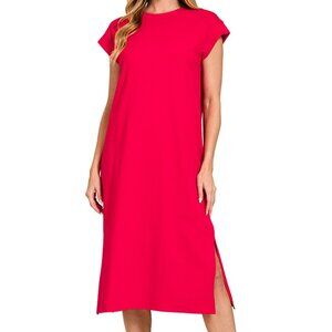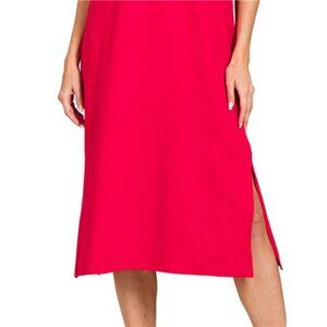 Zenana Round Neck Side Slit Midi Dress