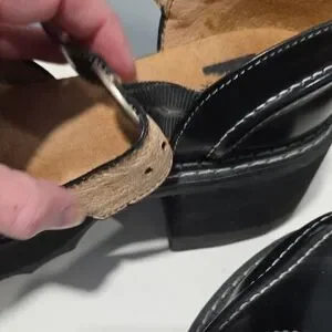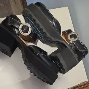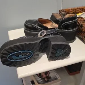 John Fluevog Mary Jane platform heels in smooth black leather. Contrasting white topstitching highlights the upper. Adjustable ankle strap with round buckle. Chunky platform sole for bold, stable wear. these are very VINTAGE they are a size 7 but can be 7.5 or even 8 depending on your toes and how you like to wear your shoes. they have so much life left I have never seen another pair in the wild I got these at the Boston store many many years ago π³ feel free to ask any questions or make an offer