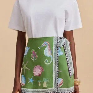 Embrace a relaxed boho vibe with this mini skirt featuring a fresh green hue and a playful marine life print that adds a splash of seaside charm. Designed with a high waist and regular fit, the straight silhouette offers effortless movement while maintaining a flattering shape. Ideal for casual outings, the skirt’s lightweight feel and easy‑going style make it a versatile addition to any wardrobe, without the distraction of pockets.