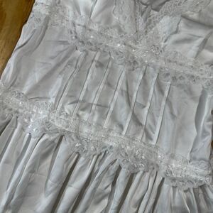 White Lace Trim Satin Mini Dress Or Nightgown - Size M
