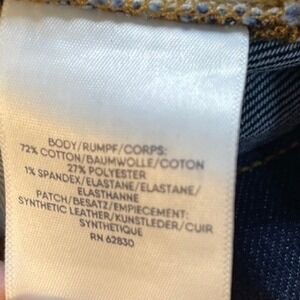 High-rise wide leg jeans in a deep indigo wash offer a sophisticated take on a retro-inspired silhouette. Crafted from a comfortable stretch denim blend, these trousers feature a clean front with a zip fly and button closure, classic five-pocket styling, and a dramatic wide leg that creates a flattering, elongated line. The contrast topstitching and faux leather back patch add a polished finish to this versatile wardrobe staple.
