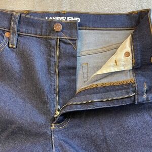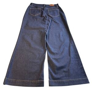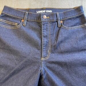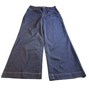 Lands End Women High Rise Wide Leg Trouser Jean Dark Indigo Blue Size 10 Stretch