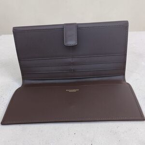 Burberry Haymarket Nova Check Bifold Wallet Brown Leather Gold Buckle Italy