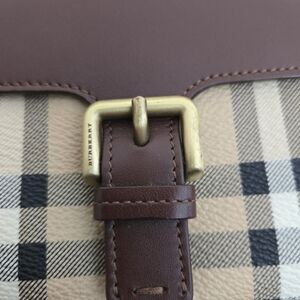 Burberry bifold wallet featuring the iconic Haymarket (Nova Check) pattern with signature Equestrian Knight motif. Crafted with durable coated canvas and rich brown leather trim, this wallet is finished with a gold-tone buckle snap closure for that elevated, heritage Burberry look. Interior is sleek and functional with signature lining and multiple compartments — perfect for everyday use while keeping things polished.