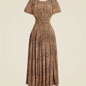 J Crew Elena Puff Sleeve Dress in Leopard Crepe de Chine