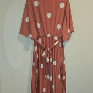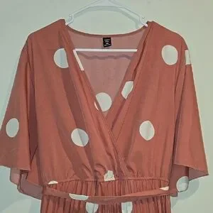 SHEIN Pink and White Wrap Tie Front Maxi Dress