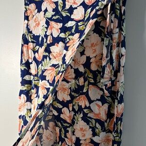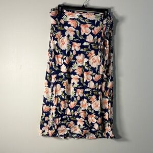 Flowy maxi skirt with a feminine floral design. Wrap-style look with a tie at the side. Soft, lightweight fabric for easy movement. Versatile piece for casual or dressed-up outfits.