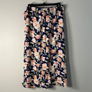 Ces Femme Navy Maxi Skirt with Pink Floral Print