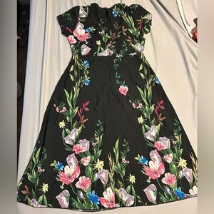 Great condition! C measurements - no tags -A dress in black with a vibrant floral print. Soft, flowing fabric with colorful blooms for a feminine look. Easy to dress up or down for daytime or evening wear. Floral pattern adds a fresh, eye-catching touch. Zipper back! Bundle and save!